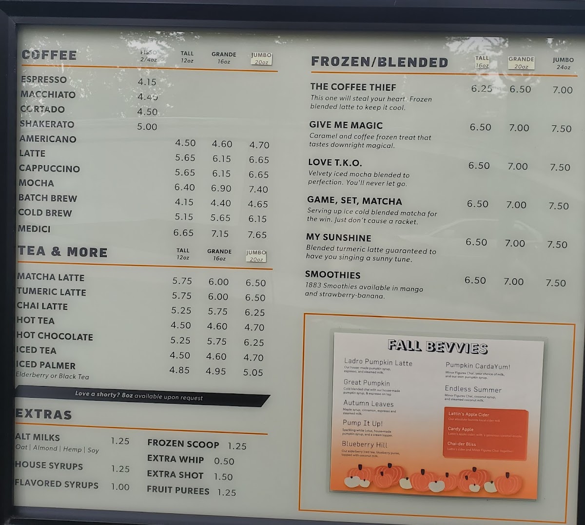 - Classic and specialty coffee drinks, from Mochas to Egg Nog Lattes